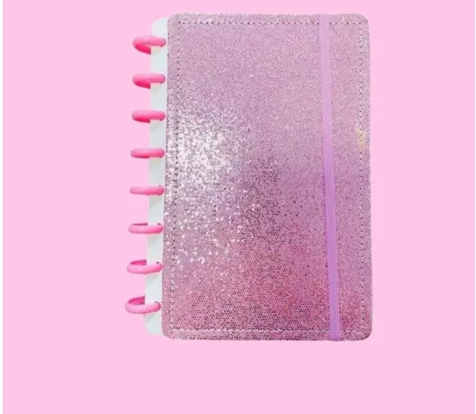 Caderno de disco com capa em Glitter , costura na capa . São 8 disco sendo considerado um caderno médio.